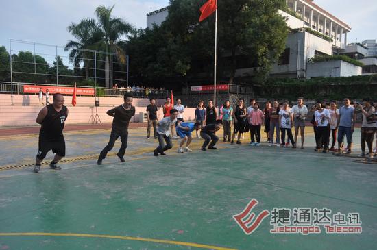 捷通达电讯副总经理马英亲临现场,与员工们一起开展了跳长绳和拔河比赛。在拔河环节,马总与信息中心代总、运营中心郭总、人力资源杨总,以及营销中心张总,五人组成的老总队,与自发组队的15名女员工,现场PK,最终,女员工们团结一心、努力拼搏,顽胜老总队。