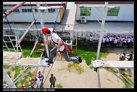 实践证明,在第一天的拓展过程中,我这个队长或许做的不够好,比如“共同进退”时没有很好地组织队员,没有很好地听取队员的意见,又比如在“高空挑战”碍于面子,而没能及时集合队伍等,但是我觉得那都不重要,至少我敢于去尝试,敢于去突破自己,不管成不成功,投入能带来快乐,果然在这个尝试的过程中获得了不少,让我知道了自己要做一个领导还有那些不足,让我知道了改如何更好地组织一个团队,改如何负起作为一个队长的责任,还有很多很多…如果我不去尝试,我就不知道我到底能不能做个队长,如果不去尝试,我不会知道自己可以高空中的板,如果不去尝试,我不会知道自己可以完成黑暗的“风雨人生路”,走完那20几分钟坎坷的路程,如果不尝试,我将永远把想对爸妈说的话埋在心底。