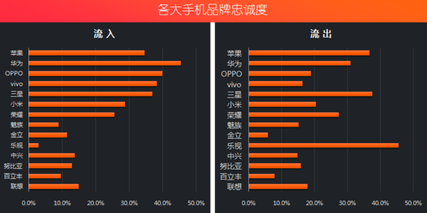 《报告》通过对手机品牌的在网情况、迪信通全渠道零售数据以及手机机型等三个维度进行分析,展现各大手机品牌在网用户与零售情况之间的差距。