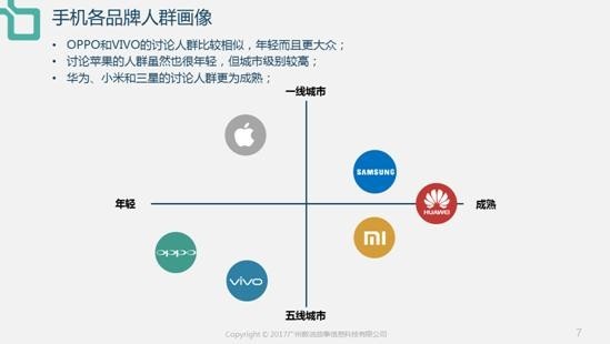 报告显示,手机行业月均声量超过140万,高处行业水平57%,总体看来,手机行业的热度不减反增,足以证明行业潜力仍然存在。从各品牌声量对比来看,vivo、小米排名较为靠前,而苹果与三星的排名一般,分析其原因,以vivo为例,产品定位年轻化,切受众面积全面下沉到三四线城市,成功活的了更加量级的用户基础。相比而言,苹果由于其品牌目标人群定向的差异,故没能进入品牌声量排行榜的前三名。