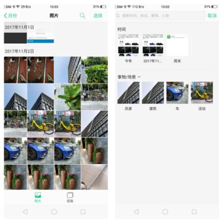 以前想在相册中找照片很难,而 ColorOS 3.2 新增了关键词搜索,最高支持 26 个不同关键词,查找起来更加方便,还不用手动输入,一点一按就找到了,非常方便。