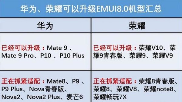 此文关键字:EMUI,8.0,升级,机型,Mate8,Nova2,等,【