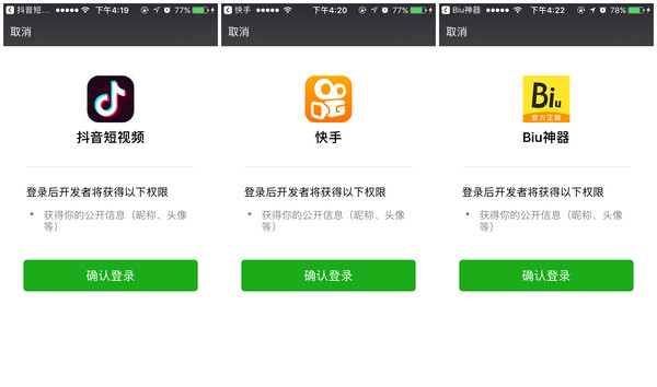 一天,小明下班后,在登录手机应用中,无意发现了快捷登录,(快捷登录是指:在登录应用或网站帐号时,只用点击QQ或微信,微博登录等,无需注册账号即可授权登录)小明点击快捷登录,登录成功。小明惊喜发现该功能极为方便,在以后登录手机应用或网页界面时均使用快捷登录。