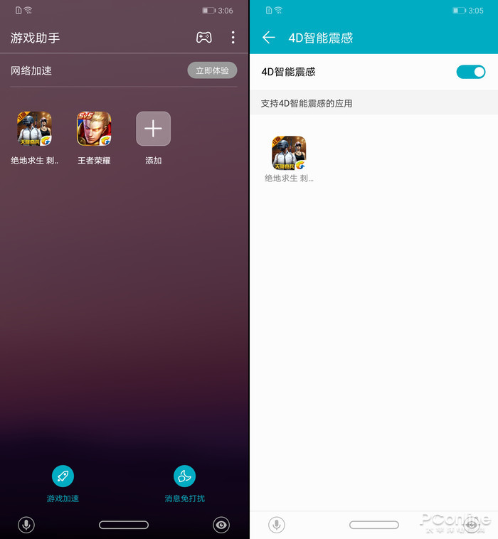 第二项吓人的技术就是全新的4D游戏震感系统和AI游戏助手,麒麟970 AI芯片通过学习了上万场游戏对战的画面和音响,能够实时识别游戏场景,增强马达的震动,加强音响与触感的体验,在我们的测试中也发现,不管是手枪的单发顿挫感还是冲锋枪的畅快射击感都被震感系统完美的表现出来了,有种就像是用游戏机手柄玩游戏的感觉,反馈明显,震感强烈,极大地提升了游戏的沉浸感。