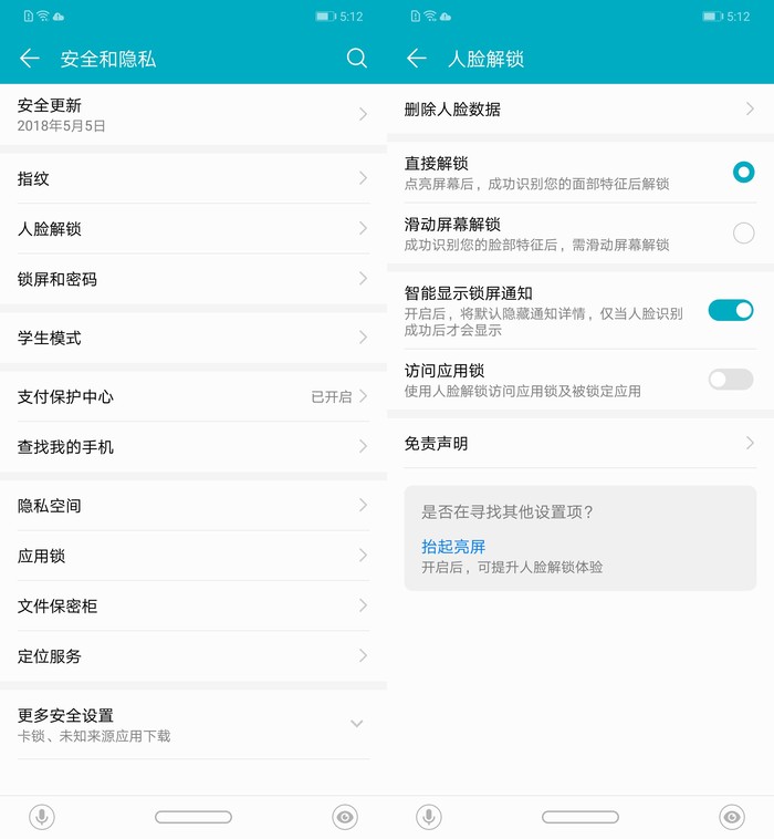 此外,荣耀 Play的人脸识别功能也非常丰富。除了用来解锁手机屏幕之外,还能针对机主进行信息内容隐藏:锁屏界面下,新的消息弹出时,只有机主才能看到消息,而其他人是看不到的。此外,当用户看着屏幕的时候,屏幕是不会自动锁屏的。