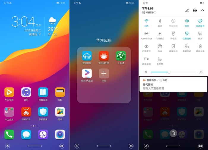 EMUI 8.2的UI设计基本上没有什么变化,桌面简洁,配色也比较大方。重新绘制的ICON大多采用了圆角矩形的方案,虽然这种方法比较「偷懒」,但确实能够使得界面更加和谐、统一。