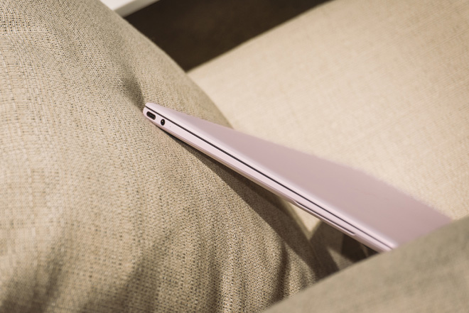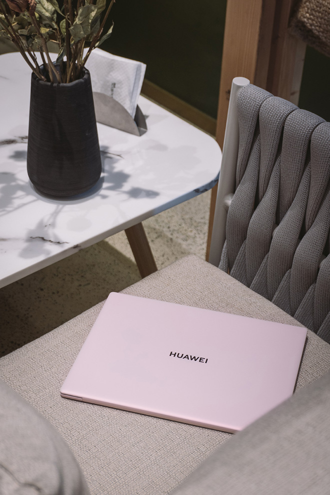 以往笔记本的配色大多是黑白灰,作为女性就更倾向于购买白色,这次华为mateBook X打造的樱语粉很有特色,这个配色并不是普通的浅粉,而是在浅粉的基础上增加了闪粉,在光线的影响下会产生奇特的视觉质感。