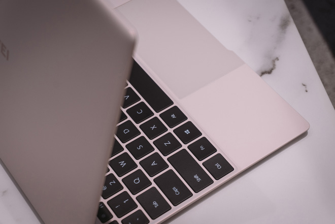 华为MateBook X的键盘敲击起来很舒服,回弹有力不软绵、噪音低。这是因为华为MateBook X采用的是1.33mm剪刀脚键盘设计,另外这个全尺寸键盘可以自动调节背光。