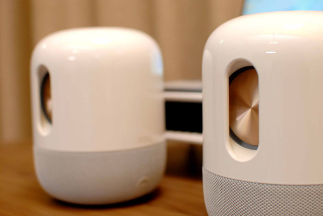 因为家里的那套是黑色,所以这次我拿的是白金色,虽然两款配色各有千秋,但不得不说白金色个人觉得更符合(Devialet)帝瓦雷的气质,当然也更高端大气上档次,大家觉得呢?体积方面比Sound X小了一大圈,毕竟在扬声器单元配置上少了一半,所以个人觉得这套中杯产品更符合桌面HIFI的定位,而Sound X则更适合与电视机搭配。
