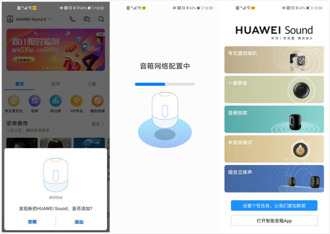 新品华为Sound智能音箱的开箱展示到这里就先告一段落了,下面我们来给音箱进行联网配对、组建立体声,才能体验TA的完整功能以及所带来的美妙音乐。