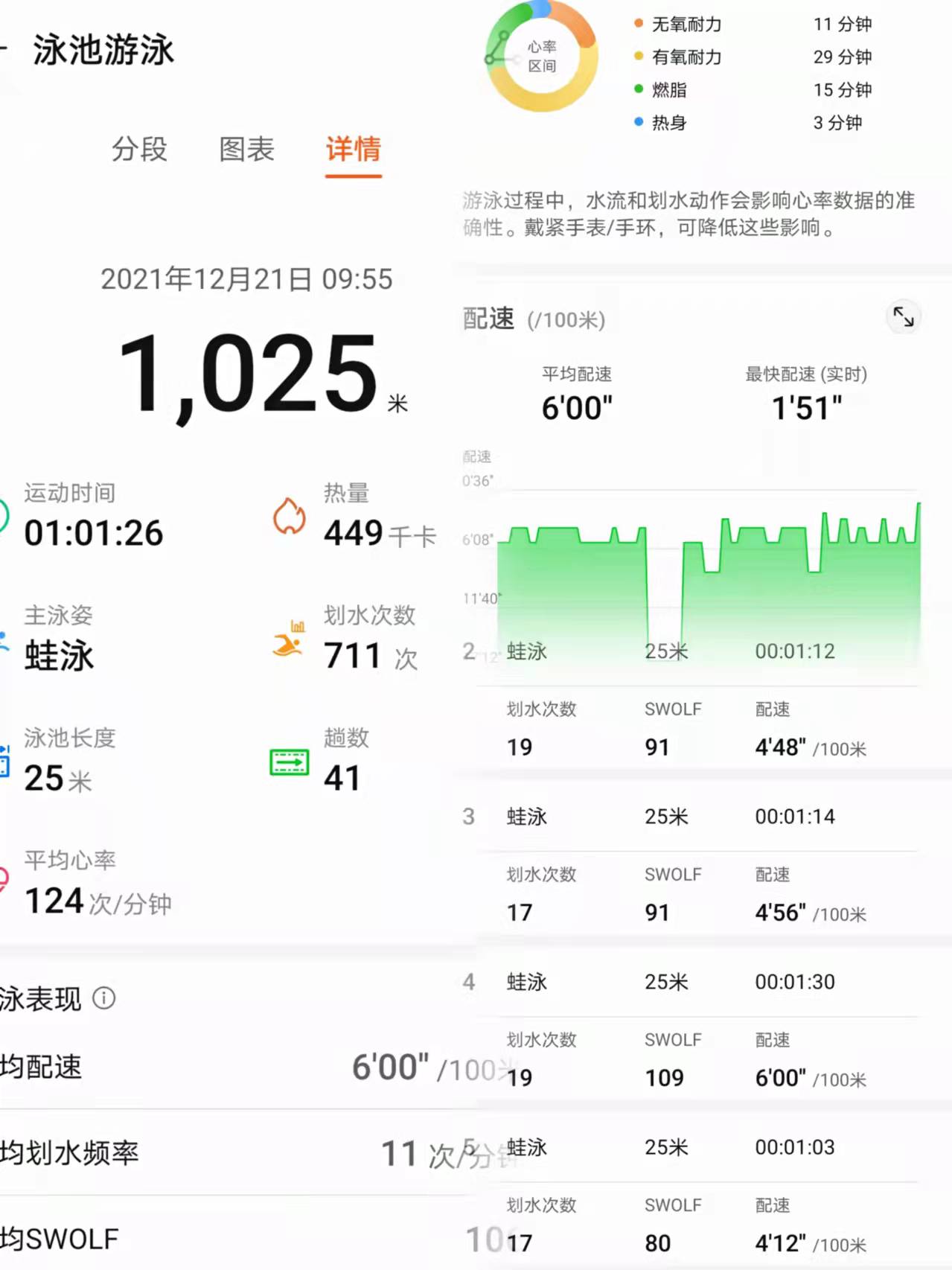 本次游泳没有当作训练,就是下水试试手表,在水中手表贴合手臂无异物感,38g超轻的重量,也不会带来额外的阻力。运动结束后翻看数据,在水里华为 WATCH GT Runner自动识别主泳姿,通过精准的感应和严密的算法给出了运动状态、划水次数、平均心率等数据,根据每一趟的游泳情况对应心率,作出运动效果的评判,当数据累计后,掌握到自己能力的量化数据后,下一次刻意的训练,用什么样的状态可以是有氧或者无氧运动,就可以针对性的提高身体能力,获得运动的快感!华为 WATCH GT Runner还有一项设置是排水功能,是可以把表内的汗液、积水主动排出,游泳后,我好奇心驱使也感受了一下,没见到有水排出来,说明手表本身防水能力就好,但额外有这样的功能确实也非常贴心。