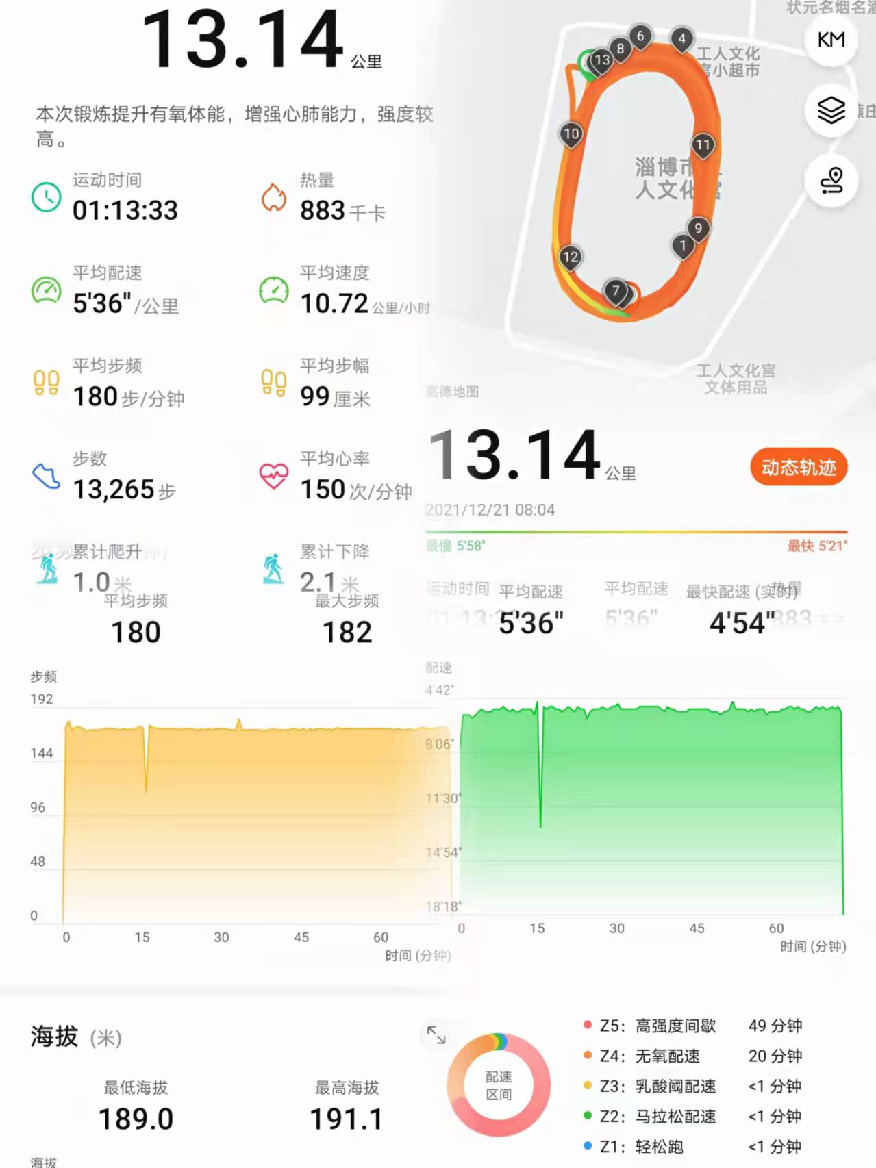 第一次使用户外奔跑13.14公里,跑中的智能提醒功能一直伴随,提醒我当前的运动状态和与目标计划的差距,使自己可以将运动数据量化,从而循序渐进的提高。