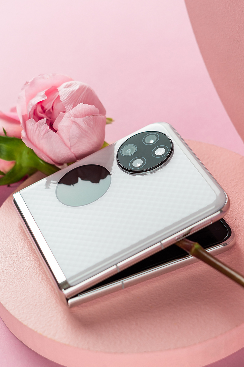 作为华为P系列科技美学和智慧影像结合的典范,华为P50 Pocket采用了上下折叠的设计,精致灵巧,极致纤薄且精美的折叠形态之上,创新实现无缝对称,以匠心工艺打造美学精品。