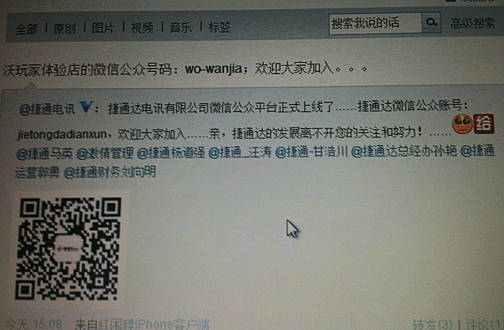 官方微博正式发布微信公众平台上线。欢迎广大员工加入……