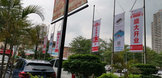 开业旗帜高高挂起、随风飘扬