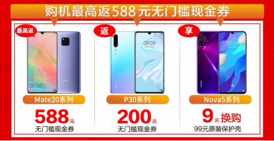 购机最高返现金券588元