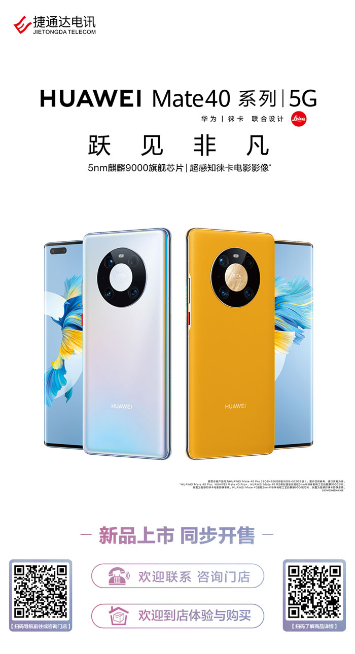 HUAWEI Mate40系列等华为全场景新品,捷通达电讯同步开售