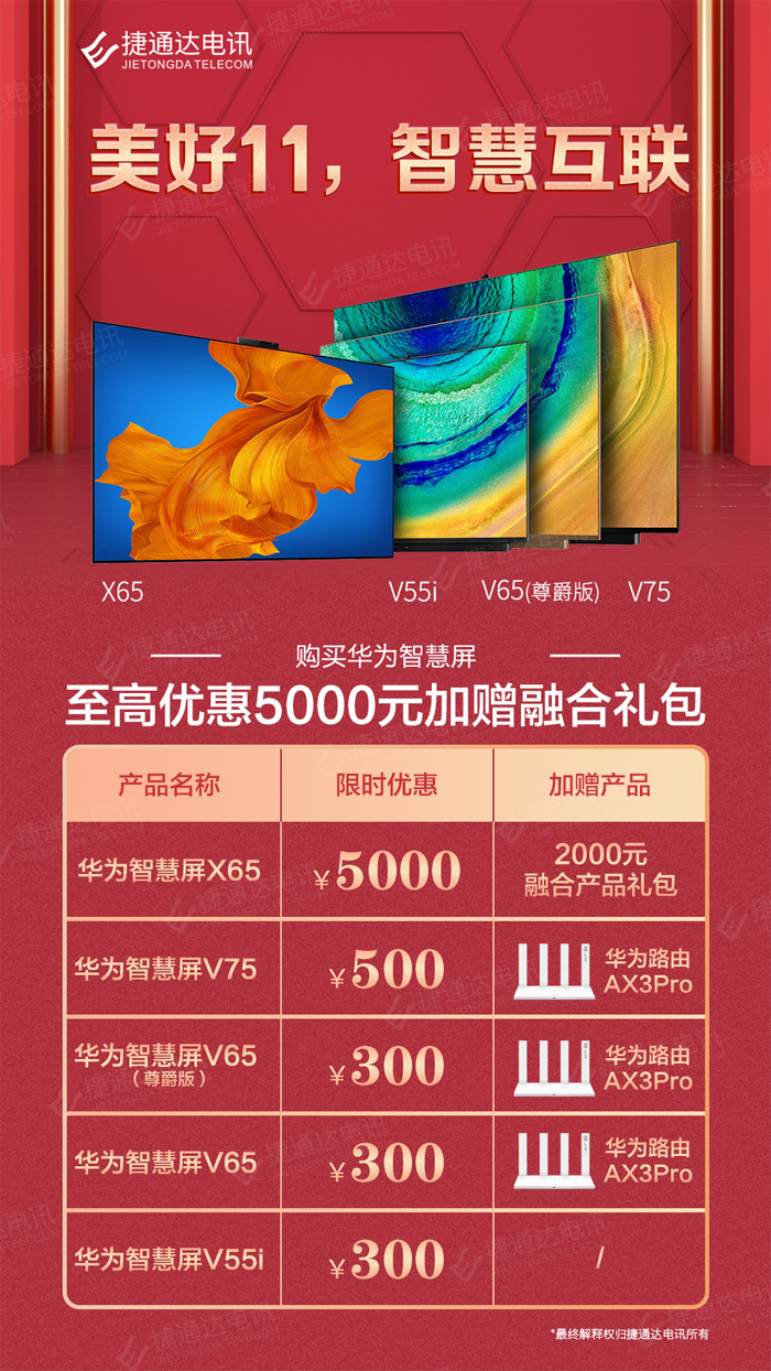 当前位置:主页 > 新闻中心 > 新品速递 > 华为超级双11购,至高优惠5000元加赠融合大礼包