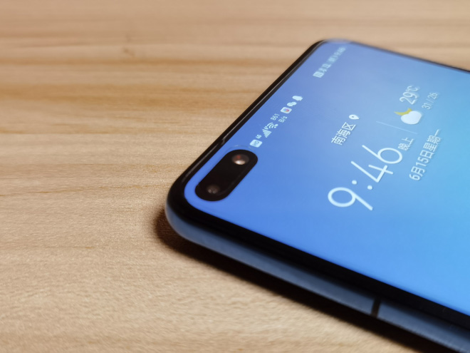 随着全面屏设计完全普及现在的手机,做大手机机身似乎是唯一的趋势,因为考虑到加入更多的元器件、功能,似乎很难再有一款与手掌大小一般的手机。华为P系列相比于其他系列,比较注重女性体验,虽然不是过去意义上的“女性手机”,从设计方面来讲,确实颇多女性会喜欢P系列。华为P40延续了前代标准版的“小而美”旗舰设计风格,而且加入了更多丰富的功能追赶时代潮流,一款小巧的手机背后不敢想象功能如此齐全,和专业版的体验相当接近。体验过P40 Pro后再去体验P40会发现轻巧的手机的确会相当不一样,有种如释重负的感觉。在拿到手以后马上就做开箱体验了,下面就来看一下这款“轻盈美学”旗舰到底有什么引人注目的地方吧。6.1英寸的屏幕尺寸容纳在玲珑小巧的机身上,双开孔魅眼设计在屏幕上的占比并不算太大,整体的观感恰到好处地符合视觉美学理念。屏幕四周的边框做到了极致地收窄,一款采用直板设计的手机在边框收缩上达到了更进一步地提升,恰到好处地提升了全面屏设计的美观。