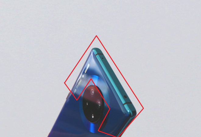 我们刚才提到过,mate30系列搭载了强大的在摄像方面搭载了双ISP处理单元、超大尺寸的感光元件以及高性能NPU,在拍照的时候,参与工作的不仅有我们的后置4摄,CPU、ISP、NPU都会参与拍照工作,提供AI图像优化、AI场景识别的服务,当我们取景的时候,会进行实时大量的图像数据分析和处理,以确保我们拍出的每一张照片都尽可能的完美。另外有一点,在我们开启后置摄像头的时候,tof是一直处于工作状态的,无论是录视频还是拍照预览,tof的发射器都会不断的发射红外点阵,进行对焦、测距的工作。因此在长时间使用的时候一定是会有功耗增加和发热的,属于正常现象,发热区域主要集中在下图区域。