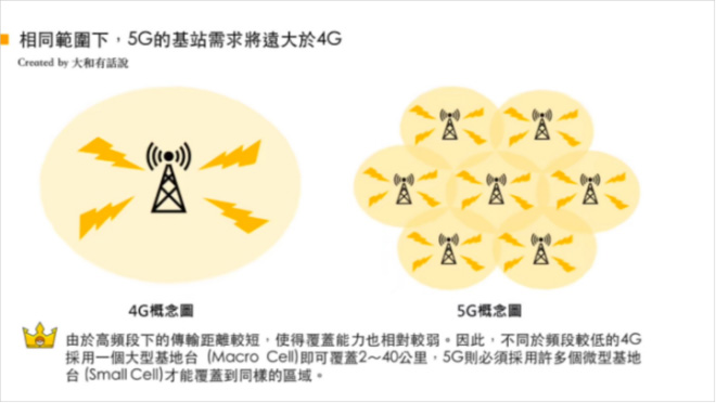 随着5G频段的提升,频率大幅度增加,导致传输距离大幅度减少。做个比方,原先一个4G基站能覆盖500米直径的一个圆,现在5G基站只能覆盖100米直径的一个圆,同样面积,基站数目就将大幅度增加!